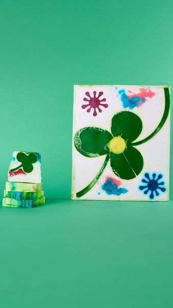In addition to the 100g slices, large 2.8kg display versions of the soaps are available. Just like a painting on a canvas, these versions have additional details and decoration – from hand painted details to additional soap mixes dropped and swirled on top.