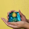 In addition to the 100g slices, large 2.8kg display versions of the soaps are available. Just like a painting on a canvas, these versions have additional details and decoration – from hand painted details to additional soap mixes dropped and swirled on top.