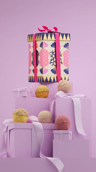 The designer of this gift, Vicki Turner, describes how, “I’ve always valued Lush’s ethical and thoughtful ethos, so to be invited to collaborate was quite the treat. I enjoyed working with the team to bring their gourmand fragrances and bonbon themes into a bold, gold and playful reality!”