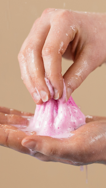 Gently hold under the running shower and allow to foam up. Take a deep breath and be hugged by the sweet essential oils to calm your mind and body before rubbing the foam all over. Perfect for a single use shower escape.