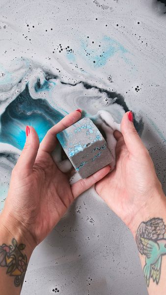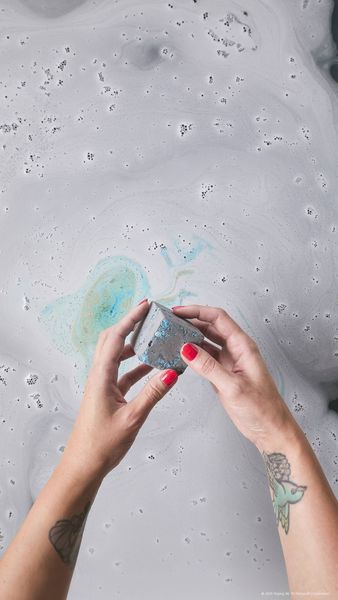 After a long day, return home and run a warm bath. Drop the bath bomb into the tub and relax.