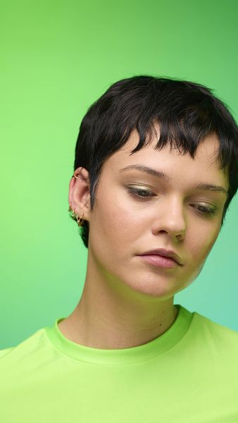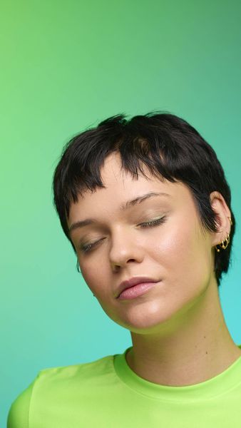 Out with the polished, in with the ethereal; enter your molten muse. A metallic fusion of silver and gold lustre creates a liquid-like shimmer across gunmetal lids. Blend out for a star-dusting of sparkle, or tap on for a rich, foil effect. Why limit the show to your lids? The galaxy’s the limit!