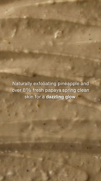 A juicy deep clean that will leave your skin glowing. This invigorating cleanser and mask is made with oodles of fresh pineapple and papaya so you can benefit from naturally exfoliating enzymes inside, and the juicy nutrient profile of whole fruit delivered fresh too, of course. With glycerine to soften and plump, and wheat germ for its beneficial vitamin E content, this fruity number is ideal for complexions that like a good cleanse and radiant results.