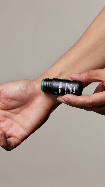 Push up gently, apply to your pulse points and massage in. Use your wrist to gently push the perfume back into its packaging.