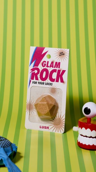 Stroke this glittering rock over dry hair to leave an eye-catching golden glimmer. Pair with electric blue eyeliner, your highest platforms and a rebellious nature.