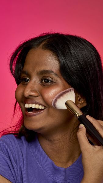Push up gently and use your fingers to apply to your brow bone and along your Cupid’s bow for a chic but subtle shimmer in the light. For a stand-out metallic shine, layer up onto your cheekbones and down the bridge of your nose by applying directly onto the skin and blending with our Glow To Town makeup brush. Use your wrist to gently push it back into its packaging.
