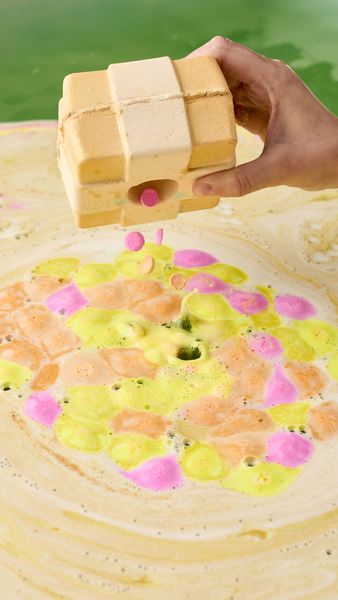 – Known for its energising scent, lime oil brings out the bright citrus character of this bath bomb.