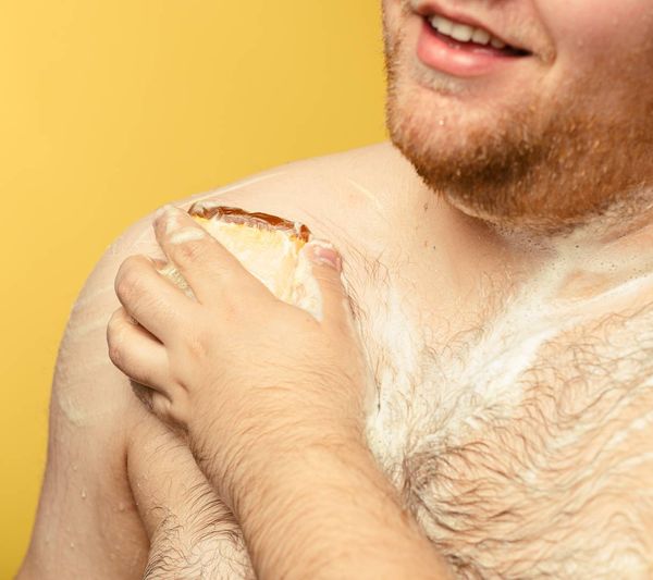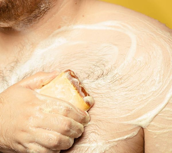 Lather up under running water, cleanse, and rinse.