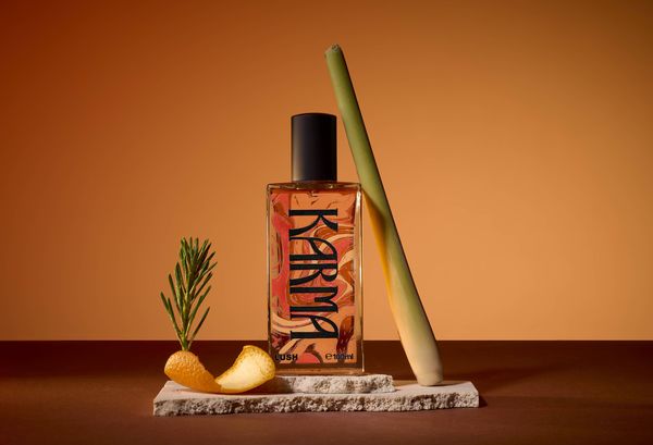 To celebrate 30 years of Karma, Lush Designer Tamsin Thomas, has created this limited edition design that was inspired by Karma bottles of the past and patterns of the ‘70s. The flowing lines mimic the way the notes of this fragrance blend together.