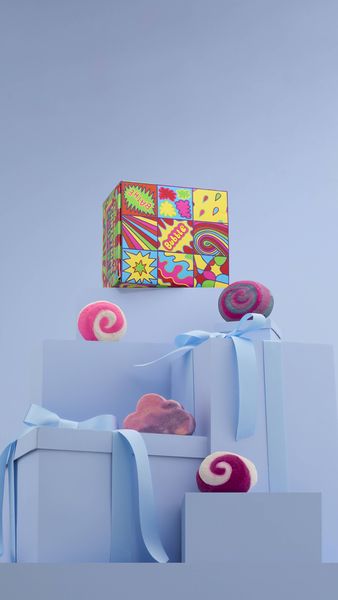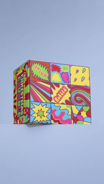Lush Creative Artworker Georgia Haywood, says, “This gift design was inspired by the bold colours, iconic motifs and punchy patterns of the Pop Art movement, blended with the playful themes of bubbles and festive bath time fun.”