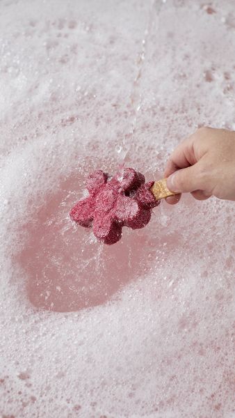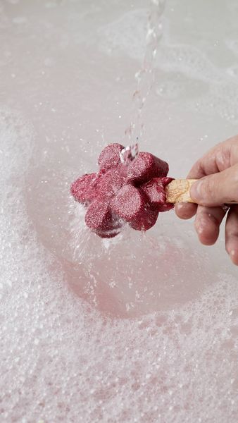 For a self-love soak, swish in warm water or hold under a running tap. Jump in and enjoy a bouquet of bubbles.