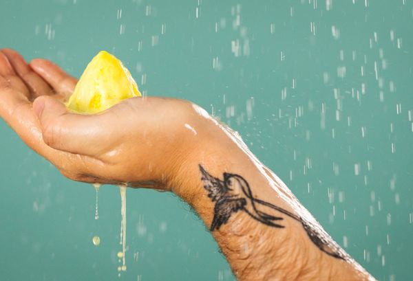 Gently hold under the running shower as it foams up. Smooth this brightening Sicilian lemon oil and exfoliating, ground white rice-filled foam all over skin before rinsing.