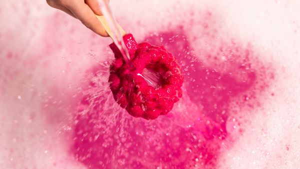 Banish boring bathing by swishing your Raspberry Blower around your tub as it fills. When you’re happy, hold the flat side to your lips and gently blow to release sweet-smelling bubbles bursting with benefits.
