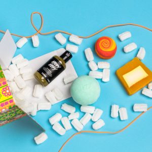 Lush Designer Loren Harrison says, “Rose Jam is one of my favourite Lush scents, and the fun rose pattern and jammy colours match the contents of this gift!”