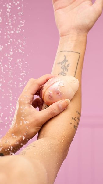 Snow Fairy meet Scrubee, Scrubee meet Snow Fairy. You’ll be best of friends in no time! Soft and supple skin is in abundance at this group hang — take your bar to the bath or shower and the ground almonds and cherry stones hidden inside will gently buff the skin as butters soften things up.