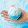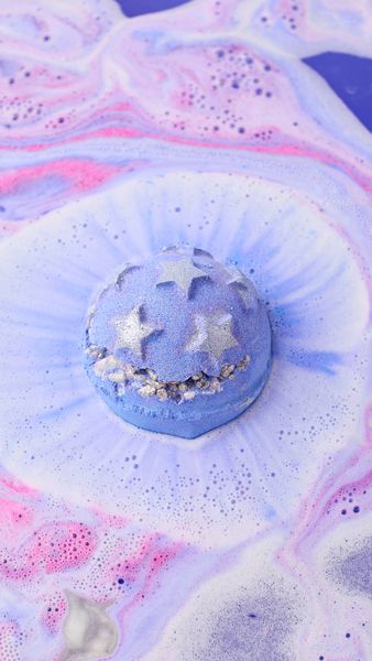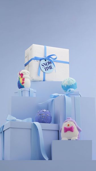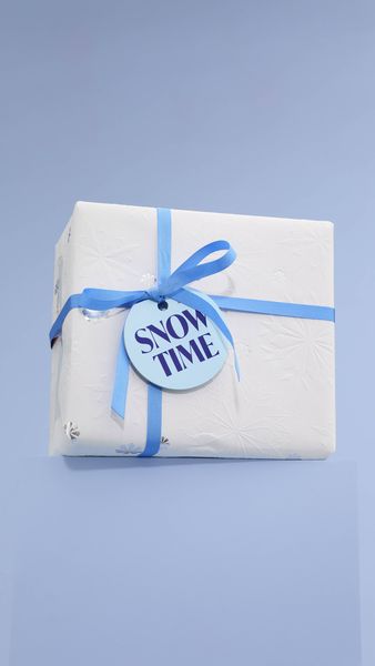 Embossed with foil snowflakes and tied with an ice-blue ribbon, Lush Creative Artworker, Loren Harrison, designed this gift to feel just like a quiet snowfall.
