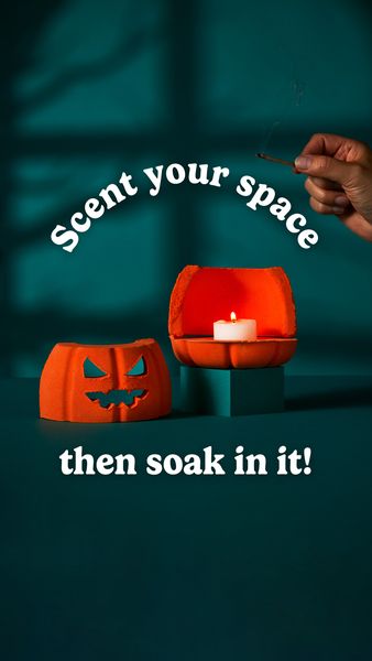 Scent your space then soak in it! With a UK patent pending, it’s the first of its kind and is the perfect fragrant pairing for those darker autumnal nights. Pop a tealight* inside and let the pumpkin glow, releasing spicy orange aromas. Once finished, you can remove the candle and use the sections of the bath bomb in the tub.