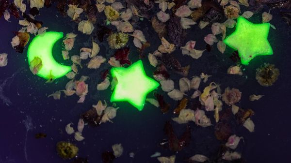 Keep somewhere dark and dry before enjoying your starry bath time. Before you are ready to unwind allow the glow-in-the-dark wax stars and moon to charge in natural light.